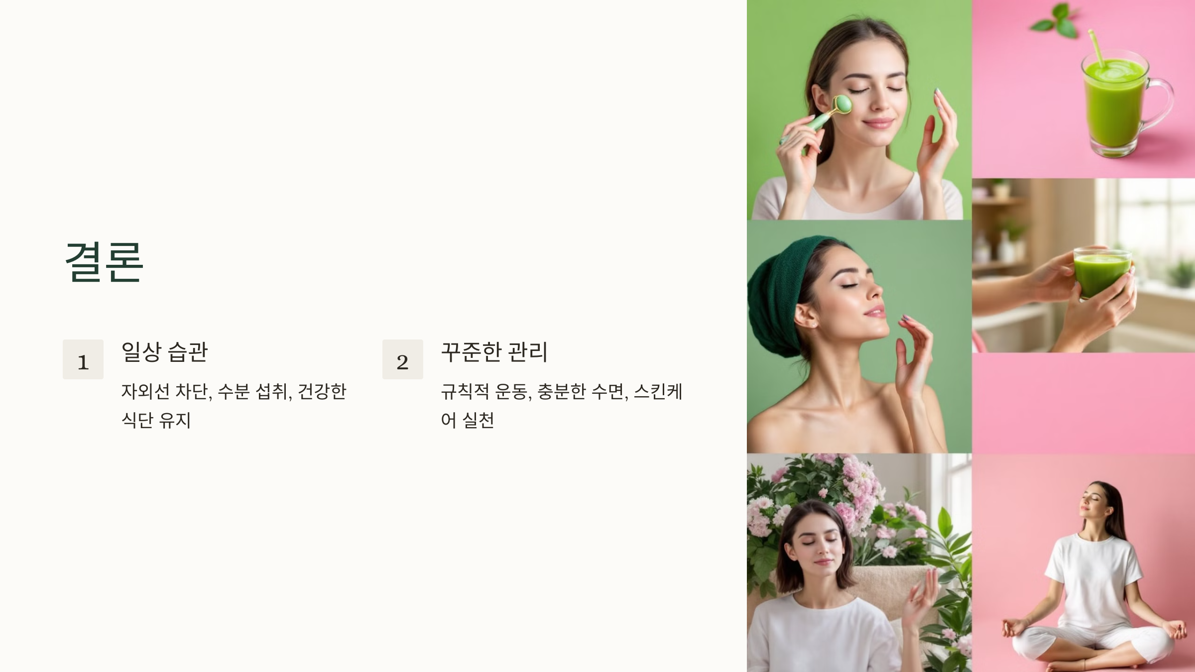 #피부노화예방 #자외선차단 #수분보충 #건강한식단 #피부관리 #운동효과 #스킨케어